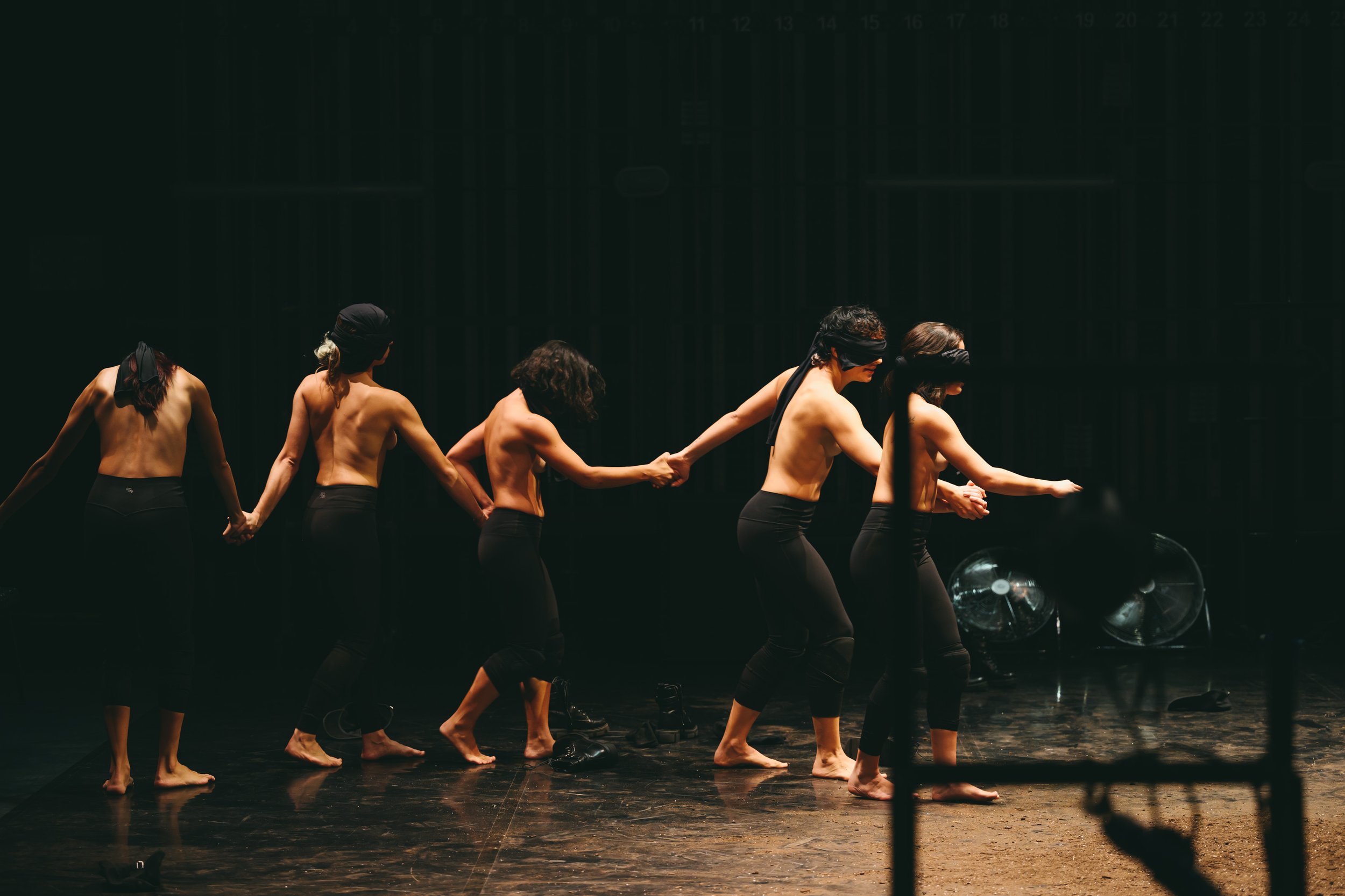 Η παράσταση μοιάζει με κοινωνικό πείραμα όπου δεν είναι σαφές ποιος είναι το πειραματόζωο: οι χορεύτριες ή ο θεατής; Το κοινό κάθεται σε αντικριστές σειρές, σαν σε αρένα. Οι χορεύτριες κινούνται ανάμεσά τους. Στην αρχή, οι κινήσεις τους θυμίζουν στρατιωτική άσκηση ακριβείας· μετρούν από το 1 ως το 12. Στη συνέχεια, επαναλαμβάνουν την ίδια διαδρομή με κλειστά μάτια. Αγγίζουν τους θεατές για να προσανατολιστούν. Το κοινό είναι πλέον υπεύθυνο για την ασφάλειά τους. Το έργο ξεπερνά τα όρια της χορογραφικής σύνθεσης και γίνεται αληθινή συνθήκη ενώ ο ρόλος του θύματος και του θύτη εναλλάσσεται.
