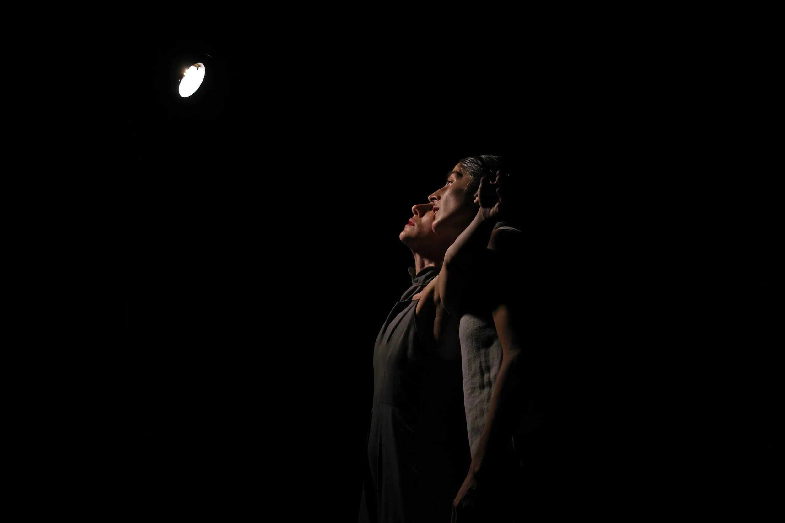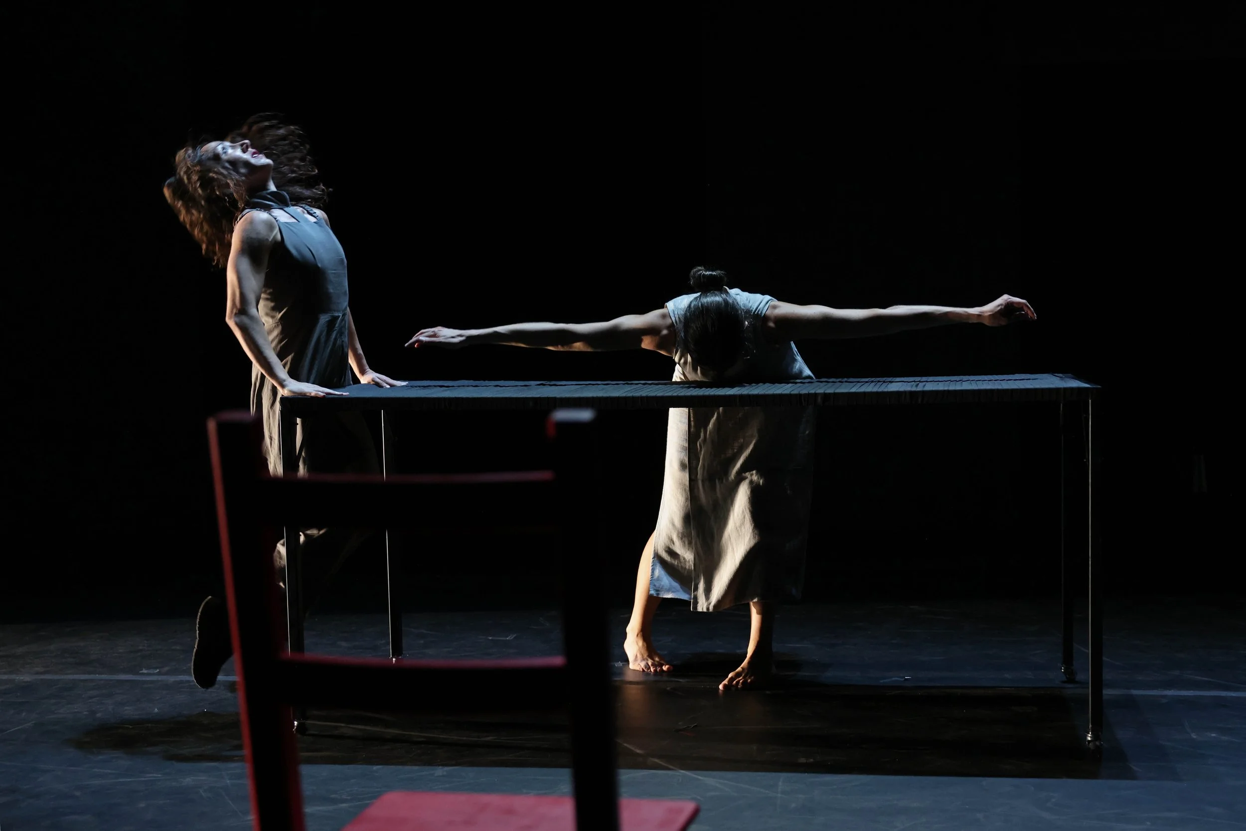 Το έργο ‘’Two – Matters of Existence’’της Αθανασίας Κανελλοπούλου είναι το δεύτερο μέρος της τριλογίας ‘’A few moments of gaze’’ που εστιάζει στο γυναικείο βλέμμα. Μια διττή γυναικεία φιγούρα, δύο ιερές και ταυτόχρονα φθαρτές μορφές, καταλήγουν να γίνουν ένα πρόσωπο, μία ’’persona’’- έμμεση αναφορά στην ταινία του Ingmar Bergman- αλλά στην ουσία μια διπλή φύση με διαφορετικούς και ξεχωριστούς προβληματισμούς. Δύο δυνατές ερμηνεύτριες μπλέκονται και συνυπάρχουν, ψιθυρίζοντας ακατάληπτα λόγια, σε μια βαθιά υπαρξιακή σχέση αρμονίας, συμπόρευσης, εξουσίας και επιβολής.